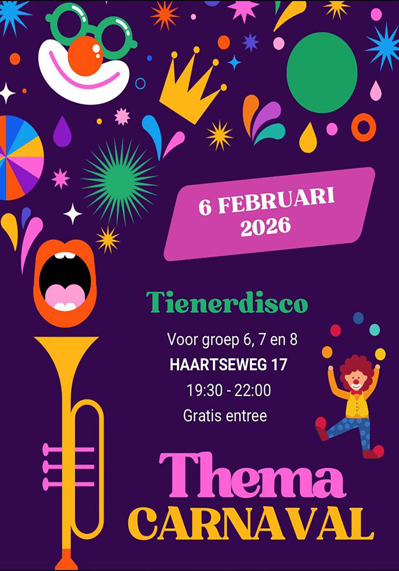 Bekijk hier de uitnodiging voor de tienerdisco op 6 februari